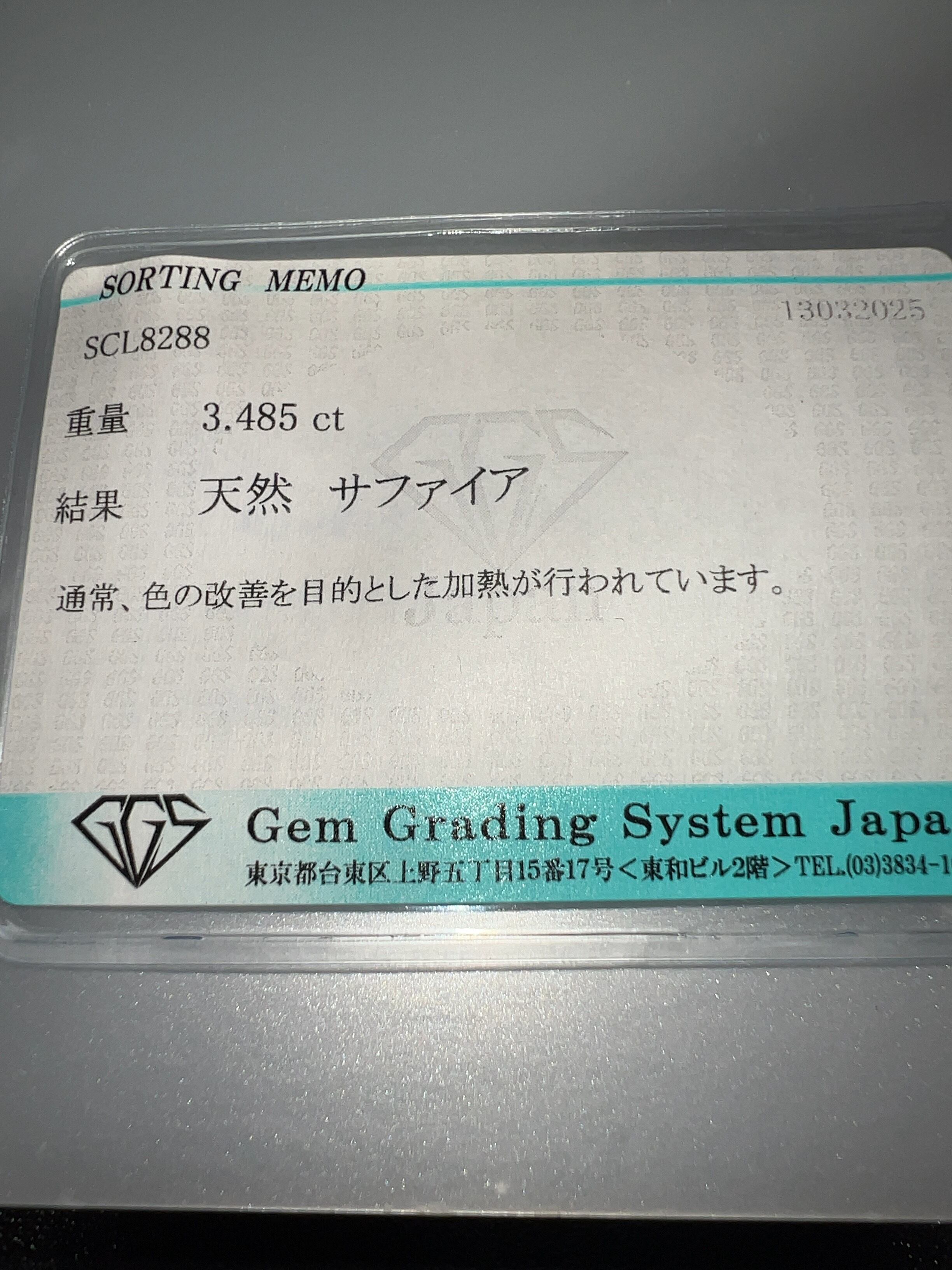 「大特価」天然サファイアルース 3.485ct KS600-0555 YB
