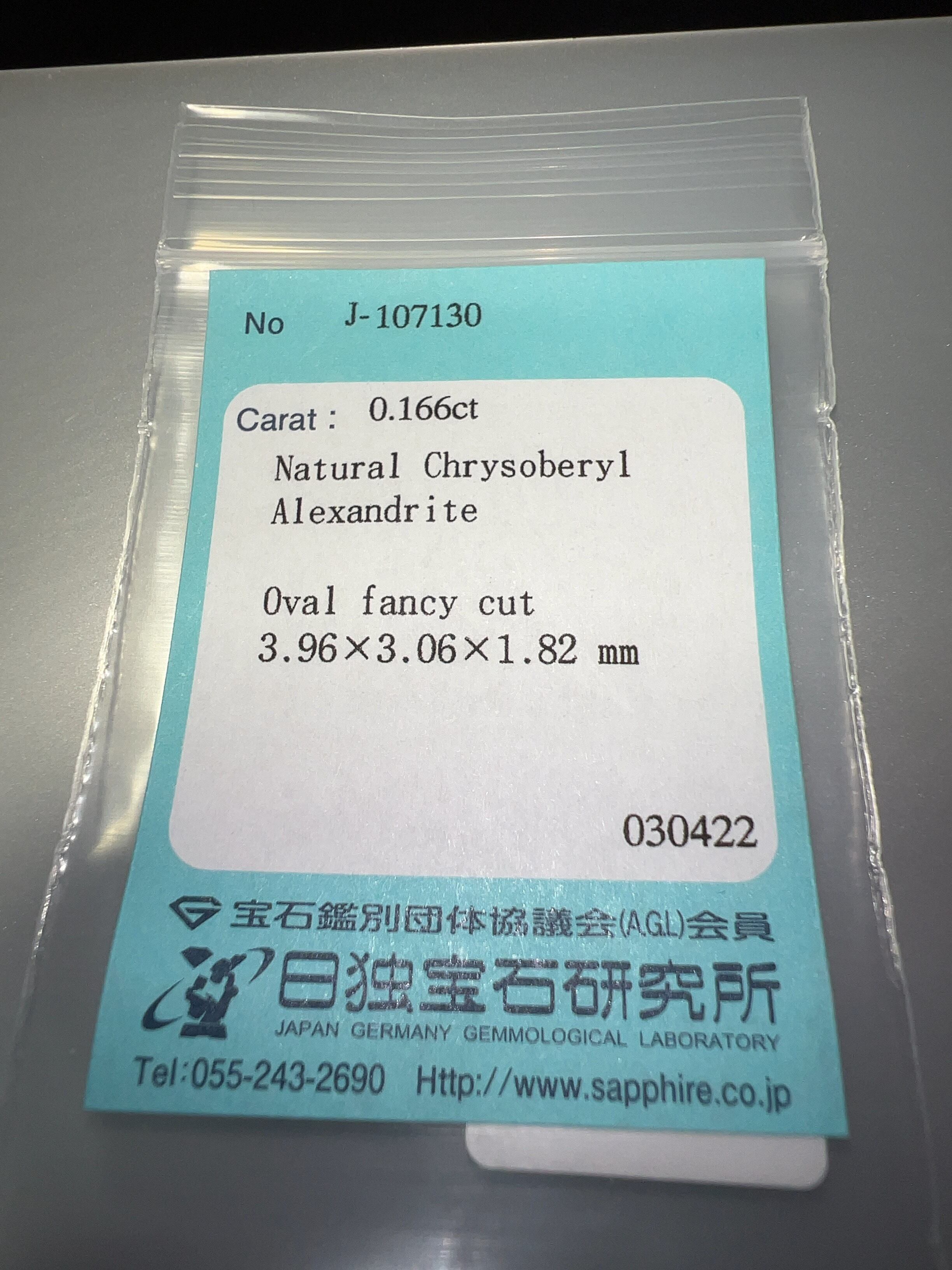 「激安宝石」アレキサンドライトルース 0.166ct KS4000-10 YB ソーティング付き