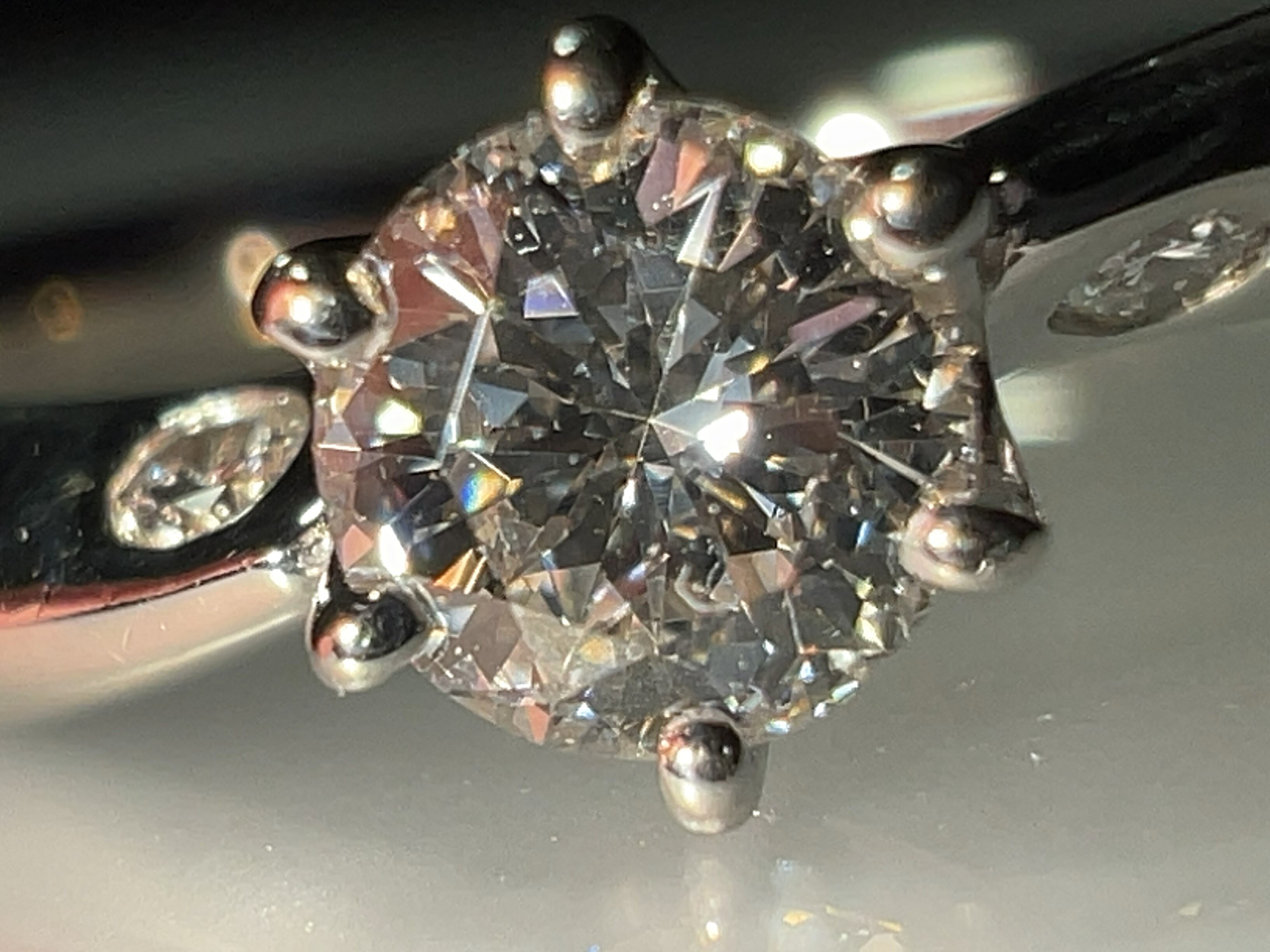 58面ラウンドブリリアントカットの輝きがテーブル面に光を集める構造に対して、144面ラウンドブリリアントカットは、ダイヤモンド全体が光るようにパビリオン部分にふくらみを持たせた構造になっており全面が広く輝きます。この違いが最も顕著に現われるのはダイヤモンドを傾けた時。わずかな光を拾って、どの角度でもこぼれるようにやわらかい光を放ち続けます。動かしたときにこそ、真価を発揮するのがこの144面カットのダイヤモンドなのです。(HP参照)