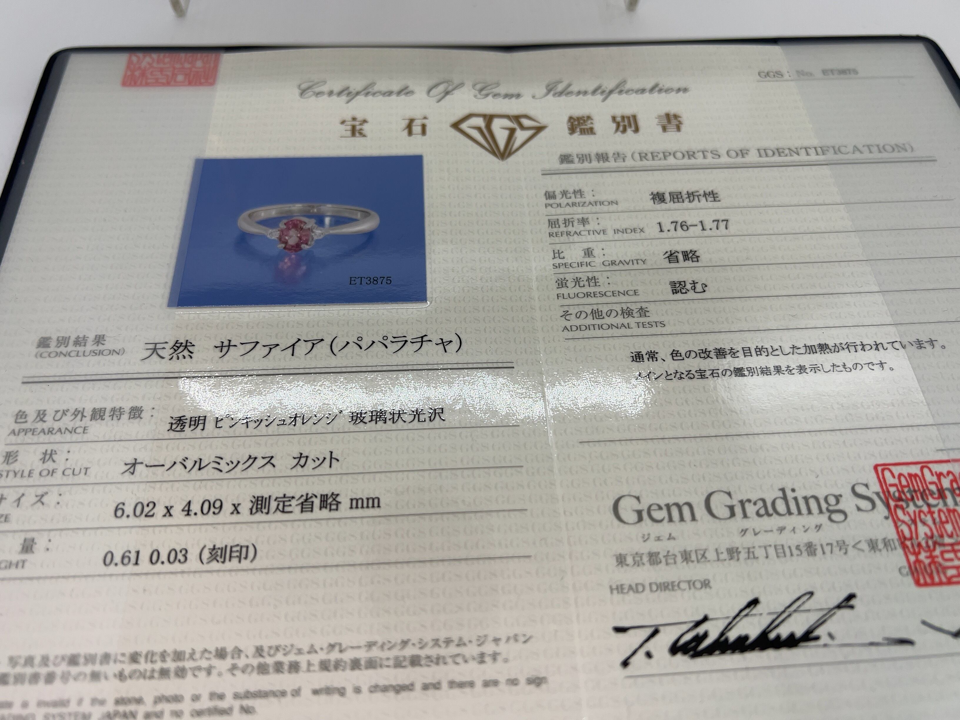 「大特価」PT900パパラチアサファイアリング KS4395 YMB
